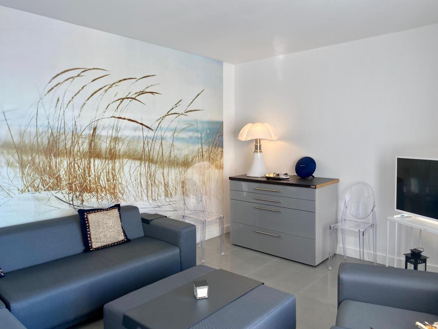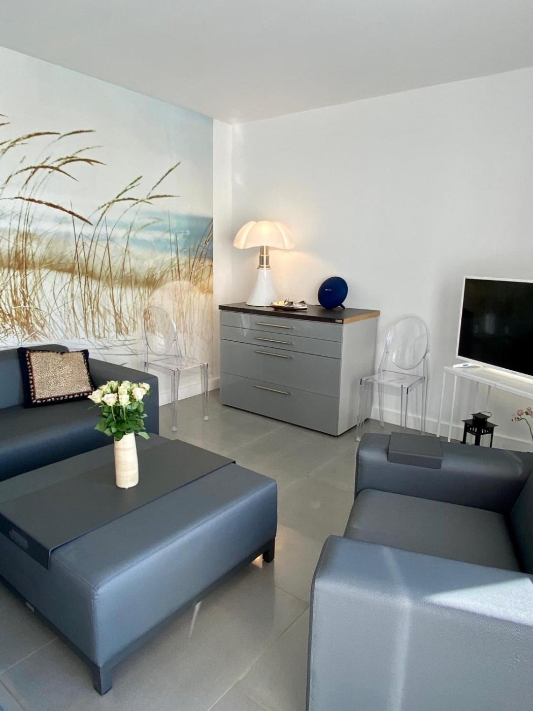 Appartement 2 Chambres. This apartments standout feature is the fireplace. This spacious apartment includes 1 living room, 2 separate bedrooms and 2 bathrooms with a shower and a hairdryer. In the well-equipped kitchen, guests will find a stovetop, a refrigerator, a dishwasher and kitchenware. Boasting a terrace with sea views, this apartment also offers a tea and coffee maker and a flat-screen TV. The unit has 3 beds.