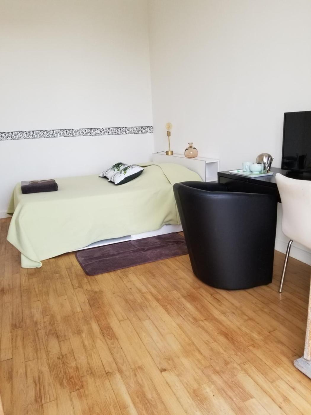 Chambre Double. This double room has a desk, a terrace, garden views and a shared bathroom. The unit has 2 beds. ;