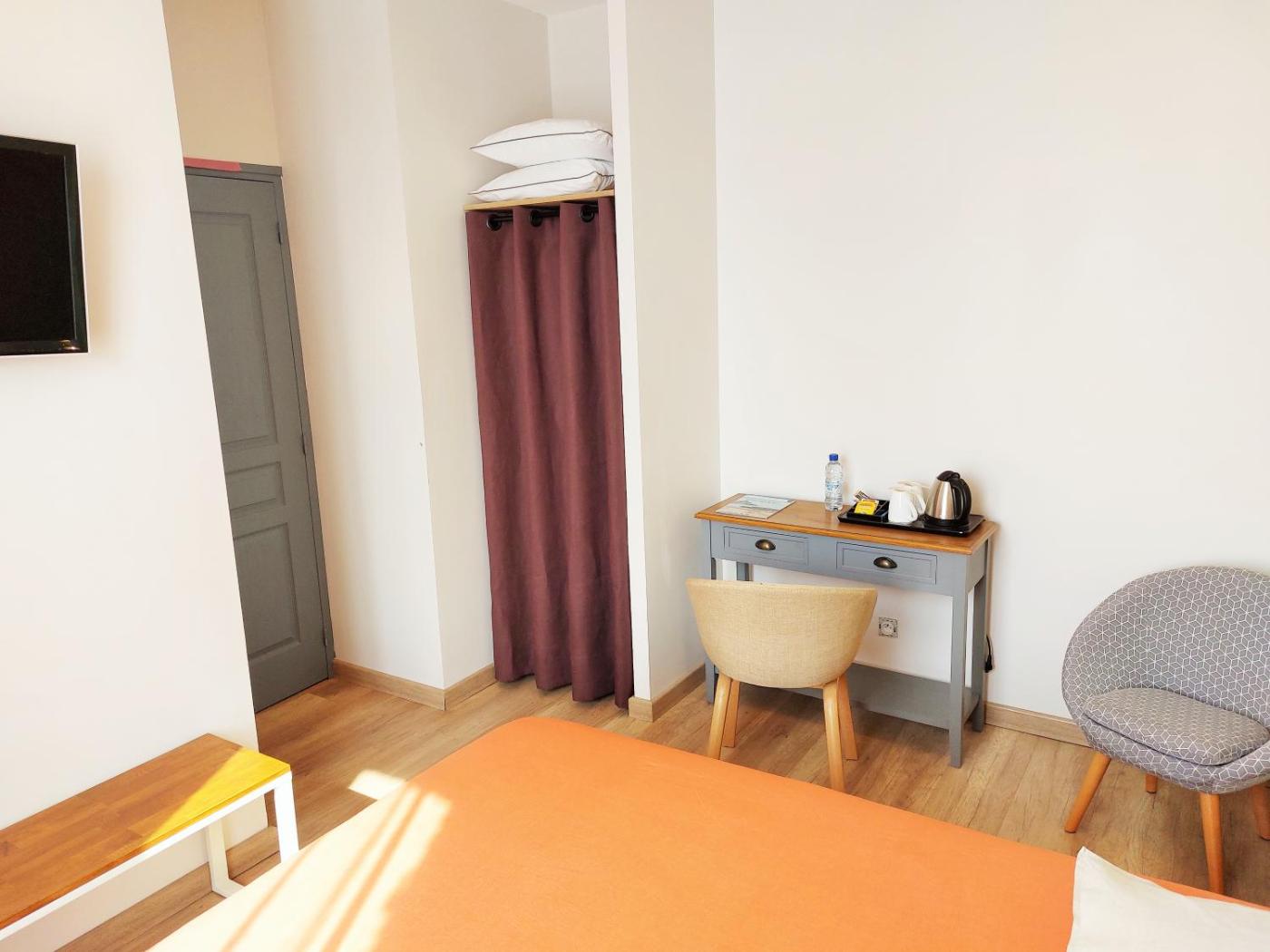 Chambre Triple Supérieure. The triple room features a private bathroom, soundproof walls, a tea and coffee maker, as well as a seating area with a flat-screen TV. This triple room has parquet floors, heating and a TV. ;