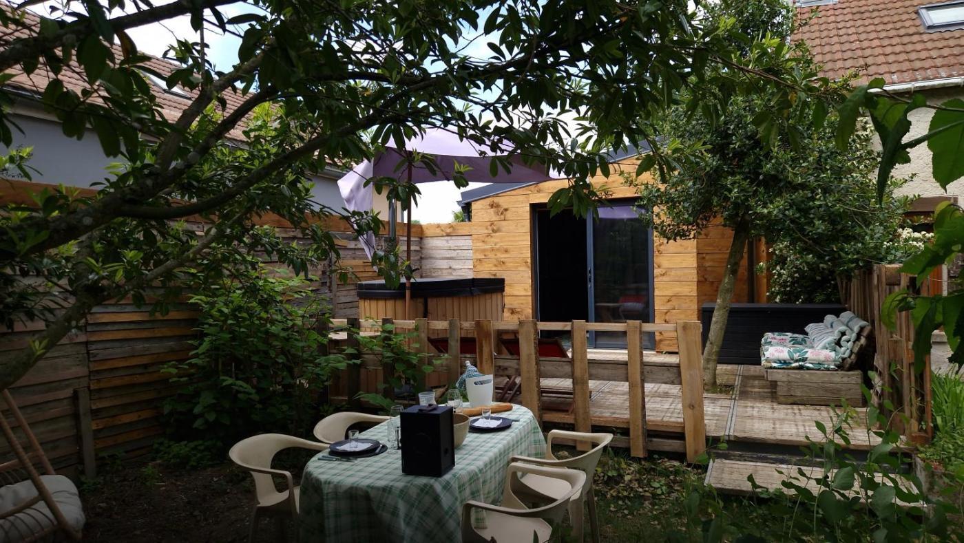 Chambre Lit King-Size Deluxe. Guests will have a special experience as the double room offers a hot tub. The spacious double room provides a private entrance, soundproof walls, a terrace with garden views as well as a private bathroom featuring a walk-in shower. The unit offers 1 bed.