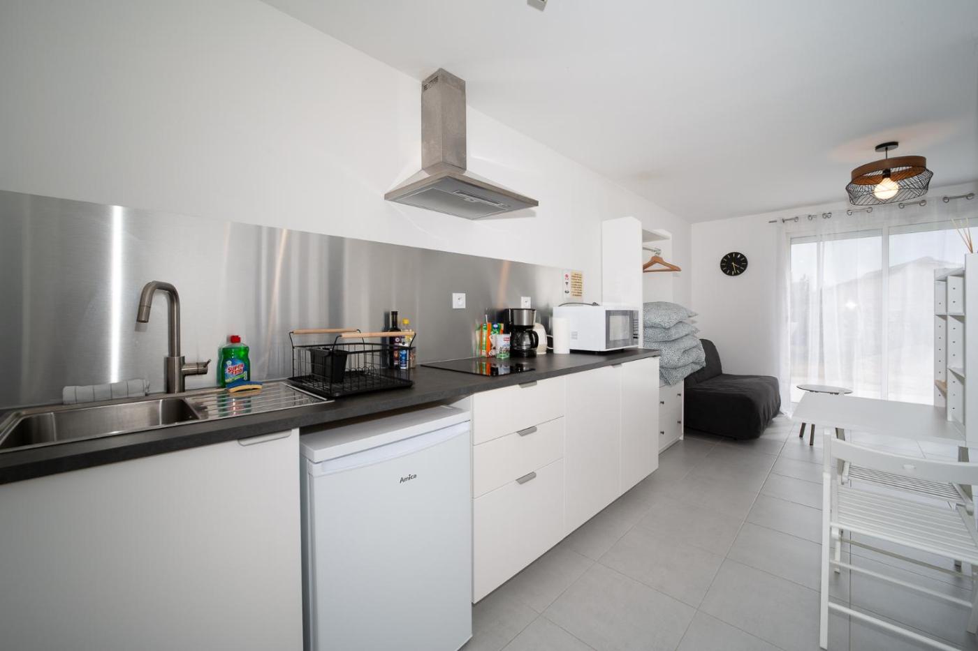Appartement 1 Chambre. Boasting a private entrance, this air-conditioned apartment features 1 bedroom and 1 bathroom with a shower. Guests will find a stovetop, a refrigerator, kitchenware and a microwave in the fully equipped kitchen. The apartment also comes with a barbecue. Featuring a terrace with garden views, this apartment also features a washing machine and a flat-screen TV. The unit has 1 bed.