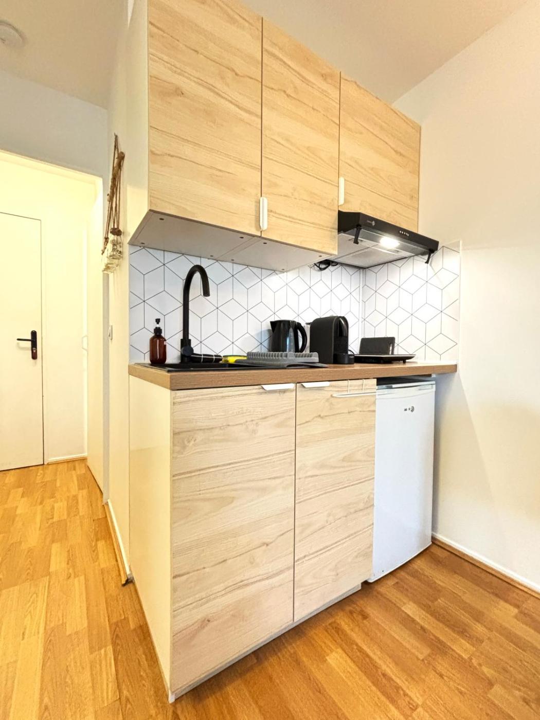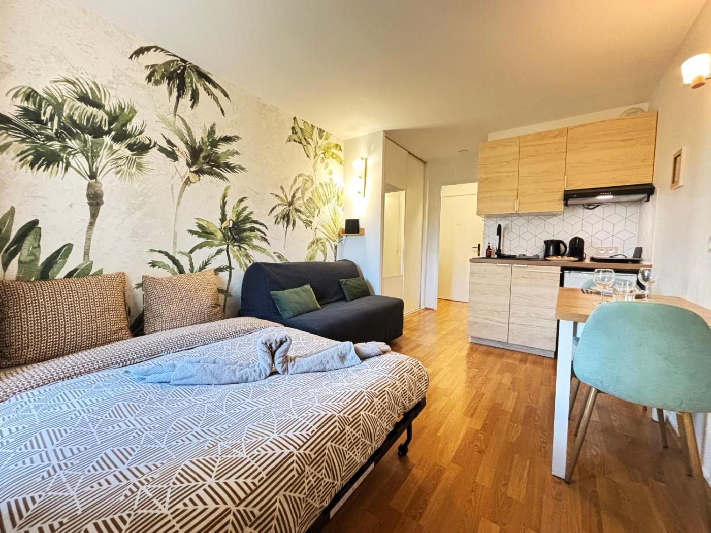 Appartement 1 Chambre. Boasting a private entrance, this apartment includes 1 living room, 1 separate bedroom and 1 bathroom with a shower and a hairdryer. Meals can be prepared in the kitchenette, which is fitted with a stovetop, a refrigerator, kitchenware and a microwave. The apartment offers a tea and coffee maker, a seating area, a dining area, a wardrobe, as well as a flat-screen TV. The unit has 2 beds.