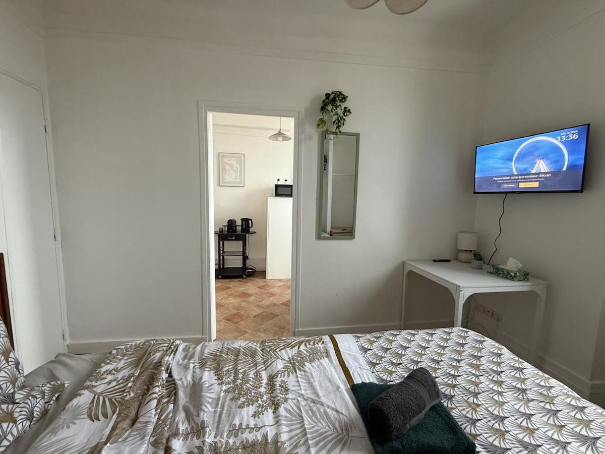 Cet appartement comporte 1 chambre, une télévision à écran plat, ainsi qu’une cuisine.