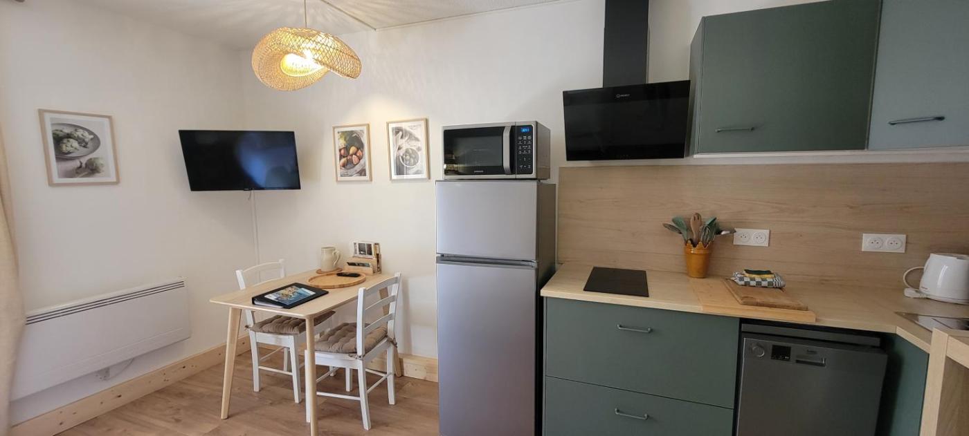 Cet appartement comporte 1 chambre, une télévision à écran plat, ainsi qu’une cuisine.