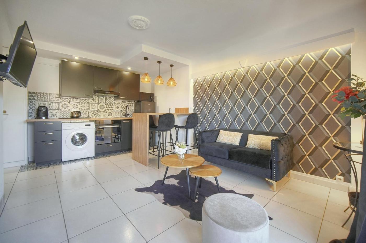 Appartement 1 Chambre. The air-conditioned apartment features 1 bedroom and 1 bathroom with a shower and a hairdryer. In the well-equipped kitchen, guests will find a stovetop, a refrigerator, kitchenware and an oven. Featuring a balcony with city views, this apartment also provides a washing machine and a flat-screen TV. The unit offers 1 bed.