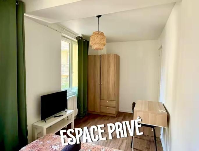 Chambre Double avec Salle de Bains Commune. The double room features a dining area, a wardrobe, an electric kettle, heating and a flat-screen TV. The unit has 1 bed.