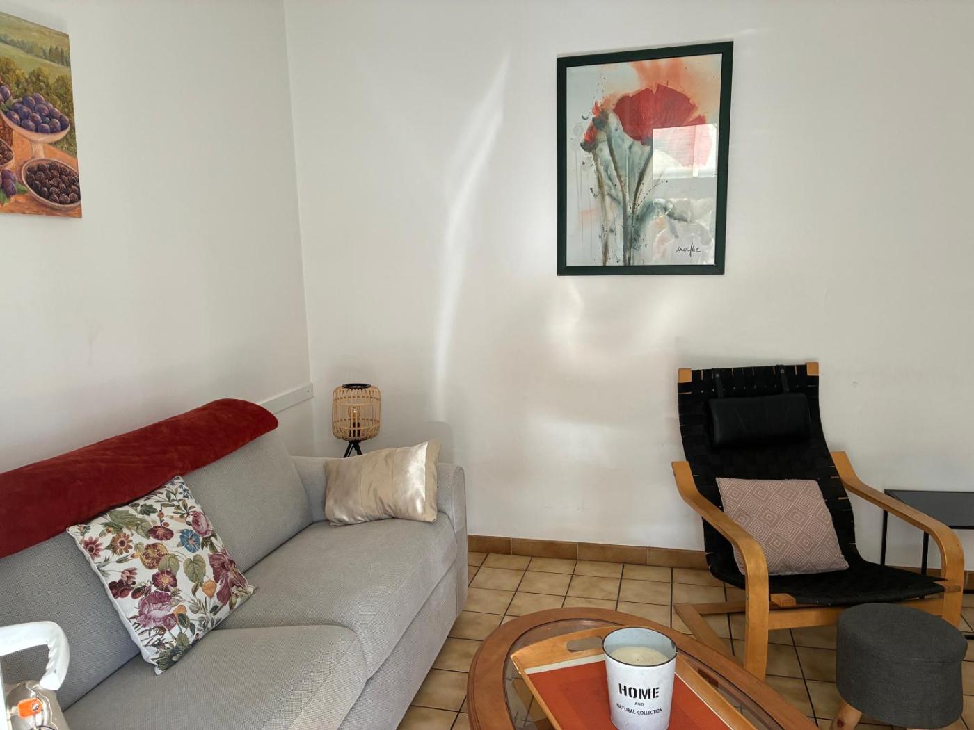 Maison 1 Chambre. Boasting a private entrance, this holiday home comes with 1 living room, 1 separate bedroom and 1 bathroom with a shower and a hairdryer. Guests will find a stovetop, a refrigerator, kitchenware and a microwave in the fully equipped kitchen. The holiday home also includes a barbecue. Featuring a terrace with garden views, this holiday home also features soundproof walls and a flat-screen TV. The unit has 2 beds.