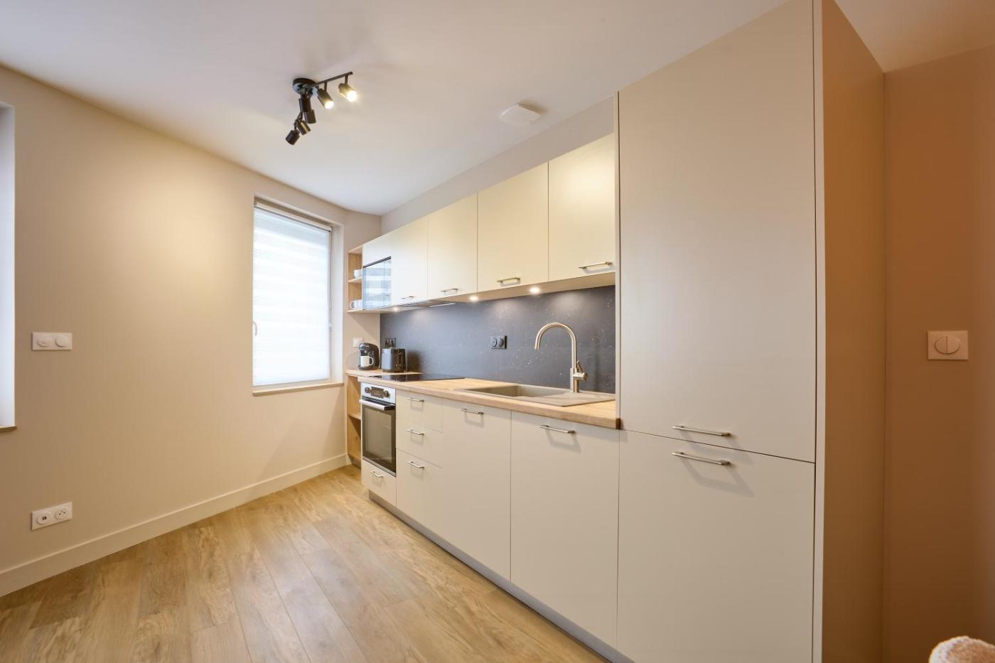Appartement 1 Chambre. This air-conditioned apartment is comprised of 1 living room, 1 separate bedroom and 1 bathroom with a bath. Guests can make meals in the kitchen that is fitted with a refrigerator, a dishwasher, kitchenware and an oven. The apartment offers a washing machine, a tea and coffee maker, a wardrobe, tumble dryer and a TV. The unit offers 2 beds.