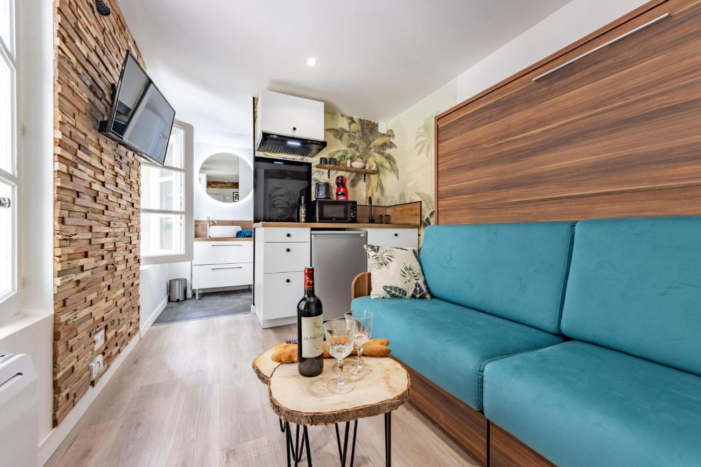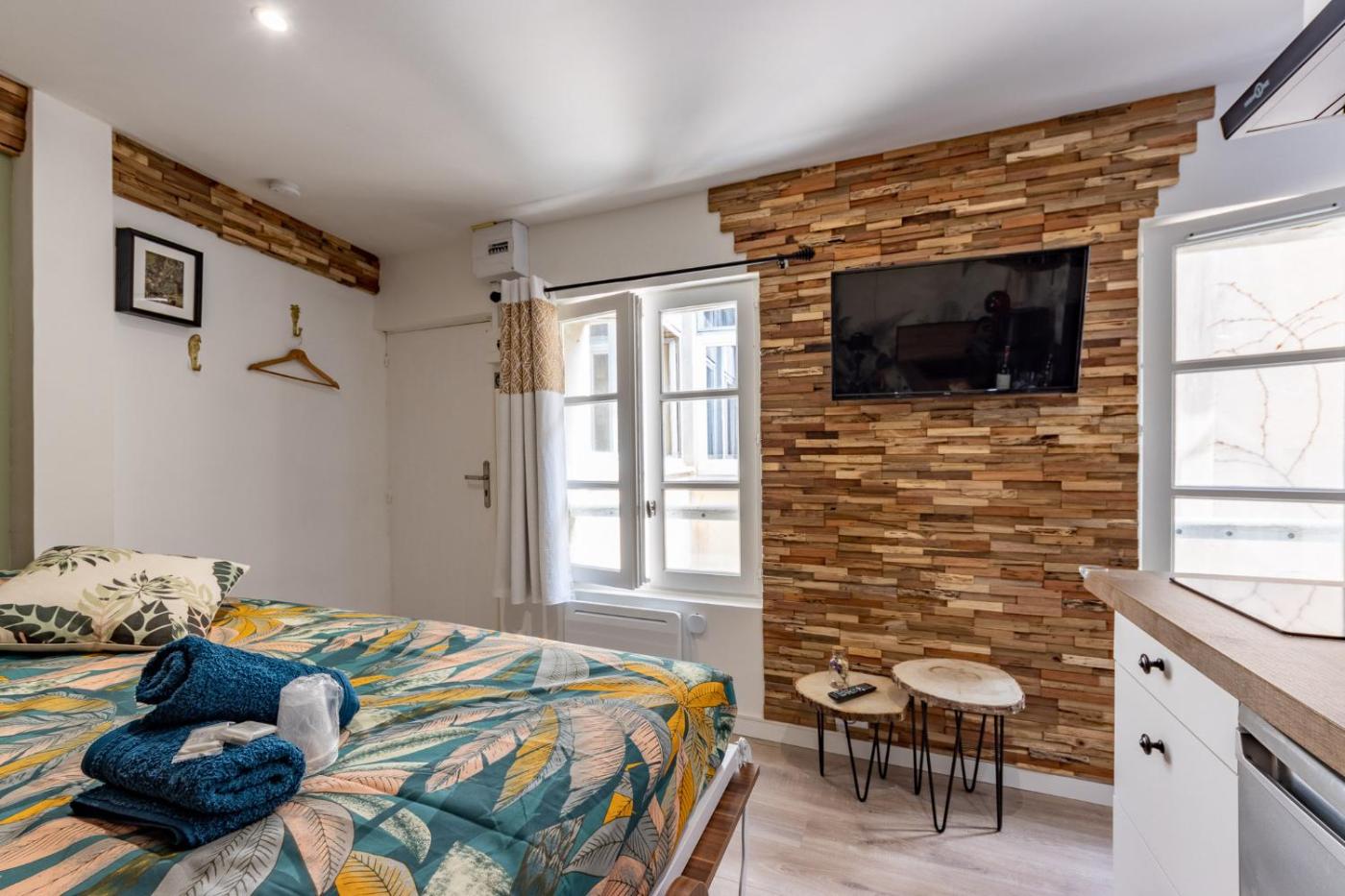 Appartement 1 Chambre. Boasting a private entrance, this apartment comes with a kitchen, 1 bedroom and 1 bathroom with a shower and a hairdryer. In the kitchen, guests will find a stovetop, a refrigerator, kitchenware and a microwave. This apartment has a coffee machine, flat-screen TV with streaming services, ancourtyard view, as well as chocolate for guests. The unit has 1 bed.