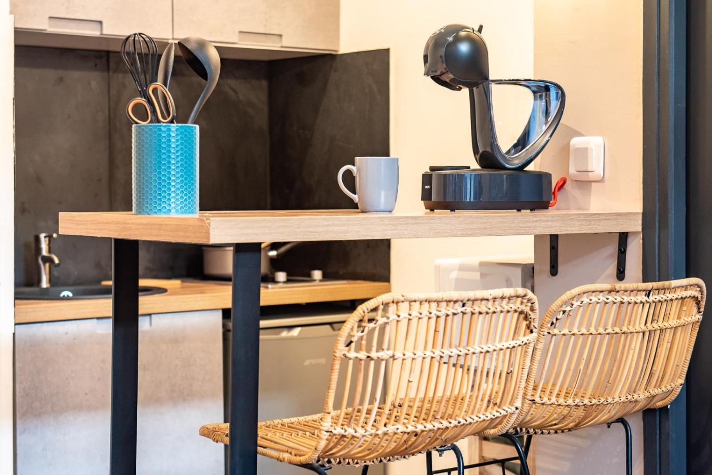 Appartement 1 Chambre. Boasting a private entrance, this apartment includes 1 living room, 1 separate bedroom and 1 bathroom with a shower and a hairdryer. In the well-equipped kitchen, guests will find a stovetop, a refrigerator, kitchenware and a microwave. The apartment offers a flat-screen TV with streaming services, a coffee machine, a seating area, a dining area as well as city views. The unit has 2 beds. ;