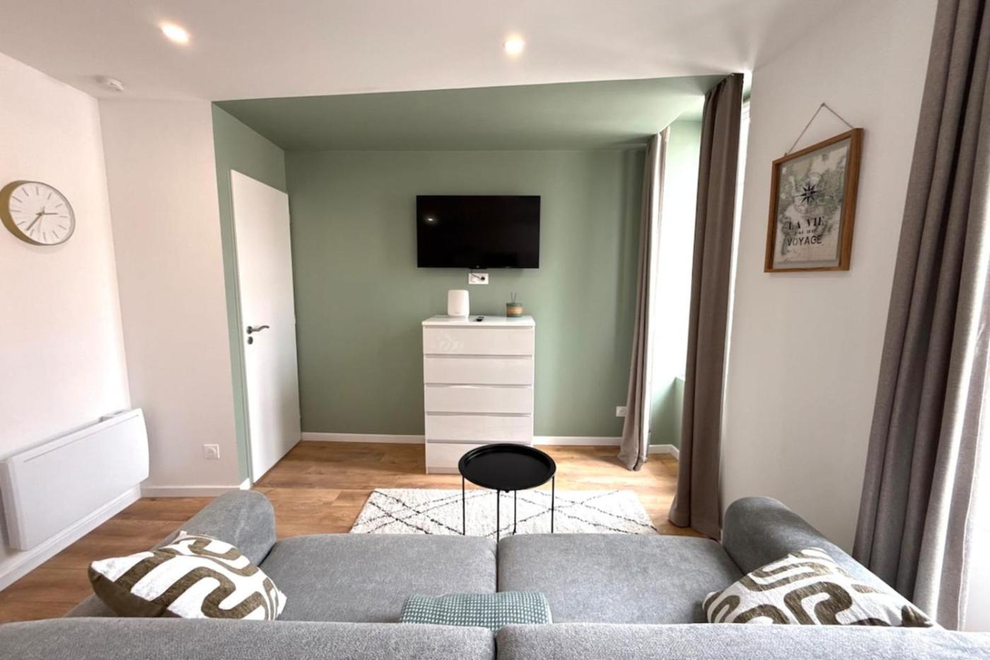 Appartement 1 Chambre. The studio offers a washing machine, a coffee machine, as well as a private bathroom featuring a shower and a hairdryer. In the kitchen, guests will find a refrigerator, kitchenware, an oven and a microwave. The studio provides a seating area, a dining area, a sofa, heating and a TV. The unit offers 1 bed.