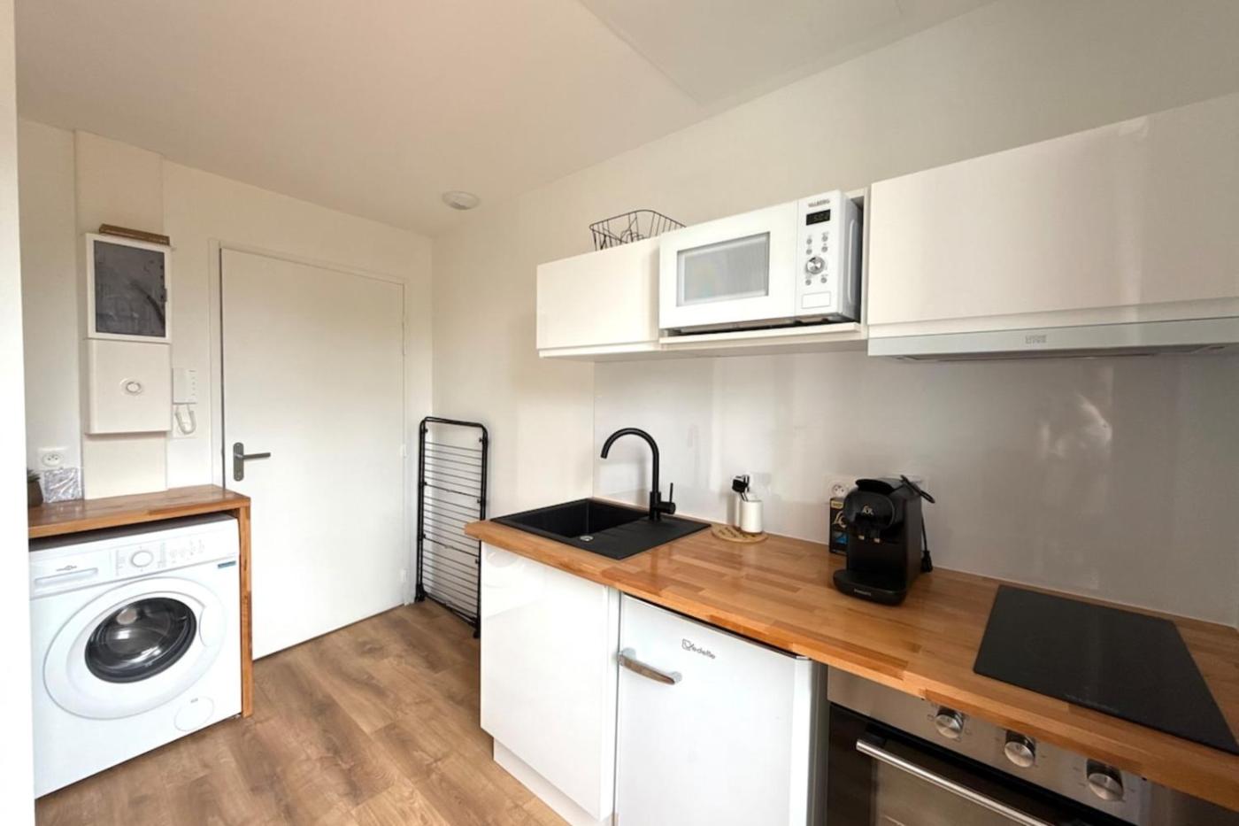 Appartement 1 Chambre. The studio provides a washing machine, a coffee machine, as well as a private bathroom featuring a shower and a hairdryer. In the fully equipped kitchen, guests will find a refrigerator, kitchenware, an oven and a microwave. The studio offers a seating area, a dining area, a sofa, heating and a TV. The unit offers 1 bed.