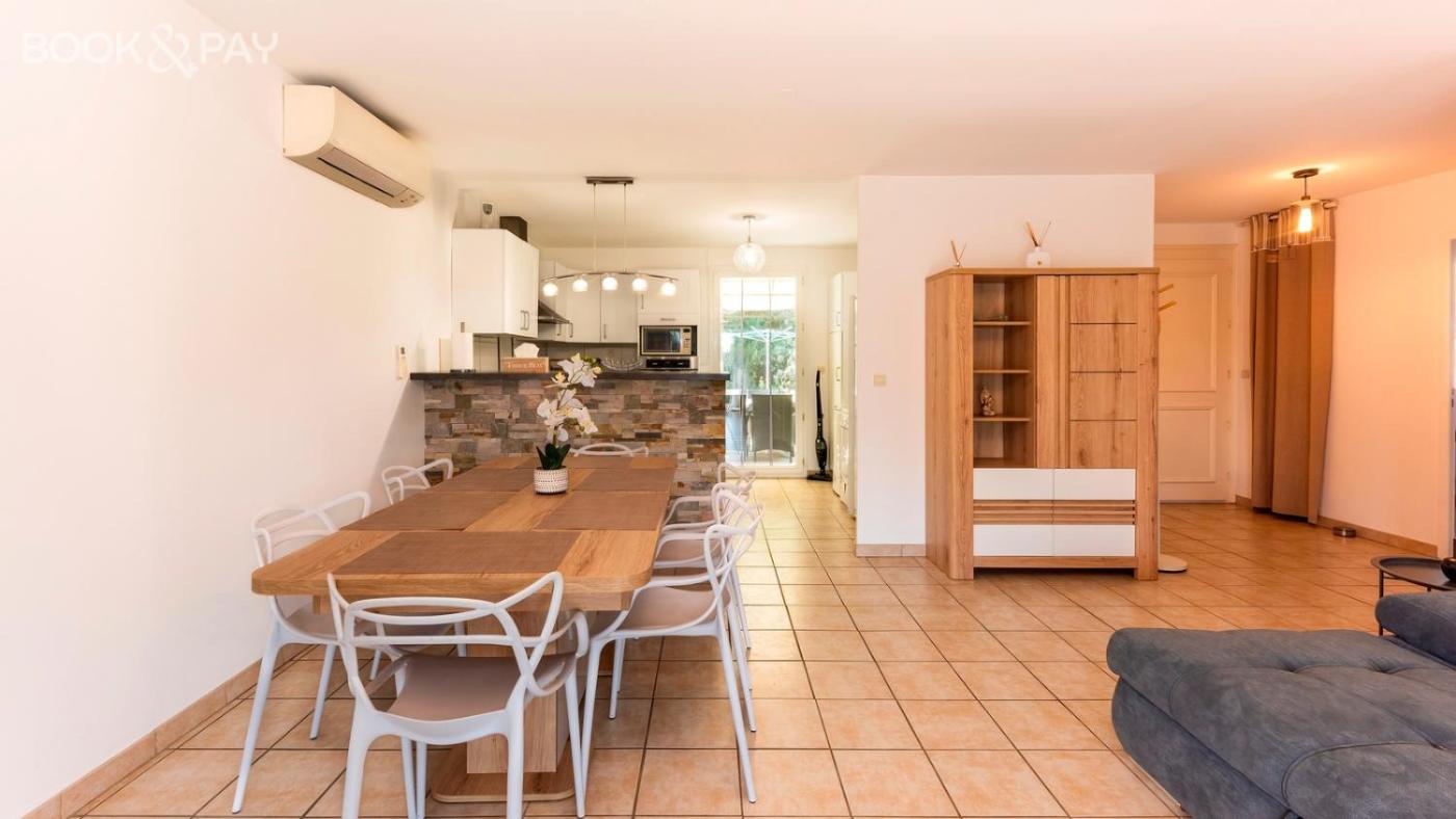 Maison 3 Chambres. Vous vivrez une expérience unique dans cette maison de vacances dotée d’une piscine privée. La cuisine bien équipée est munie de plaques de cuisson, d’un réfrigérateur, d’un lave-vaisselle et d’ustensiles. Cette maison de vacances est également munie d’un barbecue. Offrant une vue sur le jardin, cette maison de vacances est pourvue de la climatisation, dune télévision par câble à écran plat, dun lave-linge, dune entrée indépendante et dun plateaubouilloire. Ce logement comprend 5 lits.